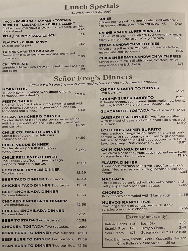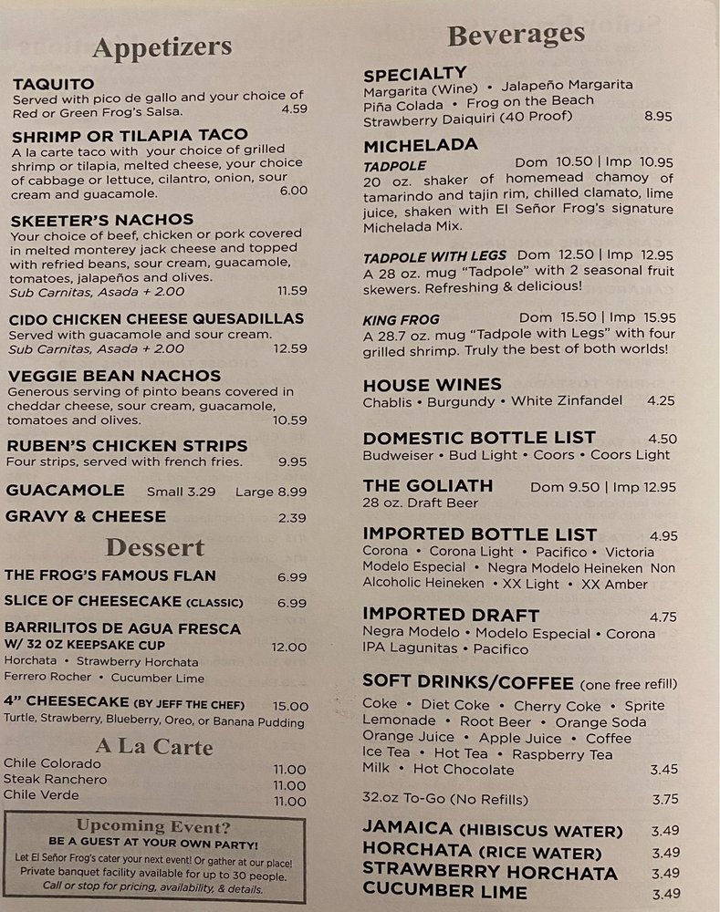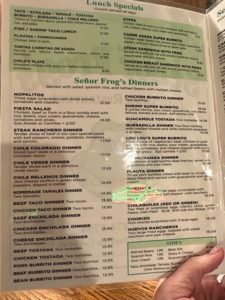 El Señor Frog's in Stockton, CA offers a delightful Mexican dining experience. From classic dishes like burritos and enchiladas to flavorful tacos, this restaurant hits all the marks. The authentic recipes and welcoming atmosphere have kept locals coming back for years. The generous portions and homemade flour tortillas impress first-time visitors like Lani S., who raved about the food and cozy ambiance. Customer service, as noted by Ken S., is exceptional, showcasing the staff's dedication and kindness. With options for vegans and limited vegetarians, El Señor Frog's caters to a variety of dietary preferences without compromising on taste. Whether you're looking for a family-friendly spot or a place to enjoy a cold beer with friends, this establishment offers a memorable dining experience.